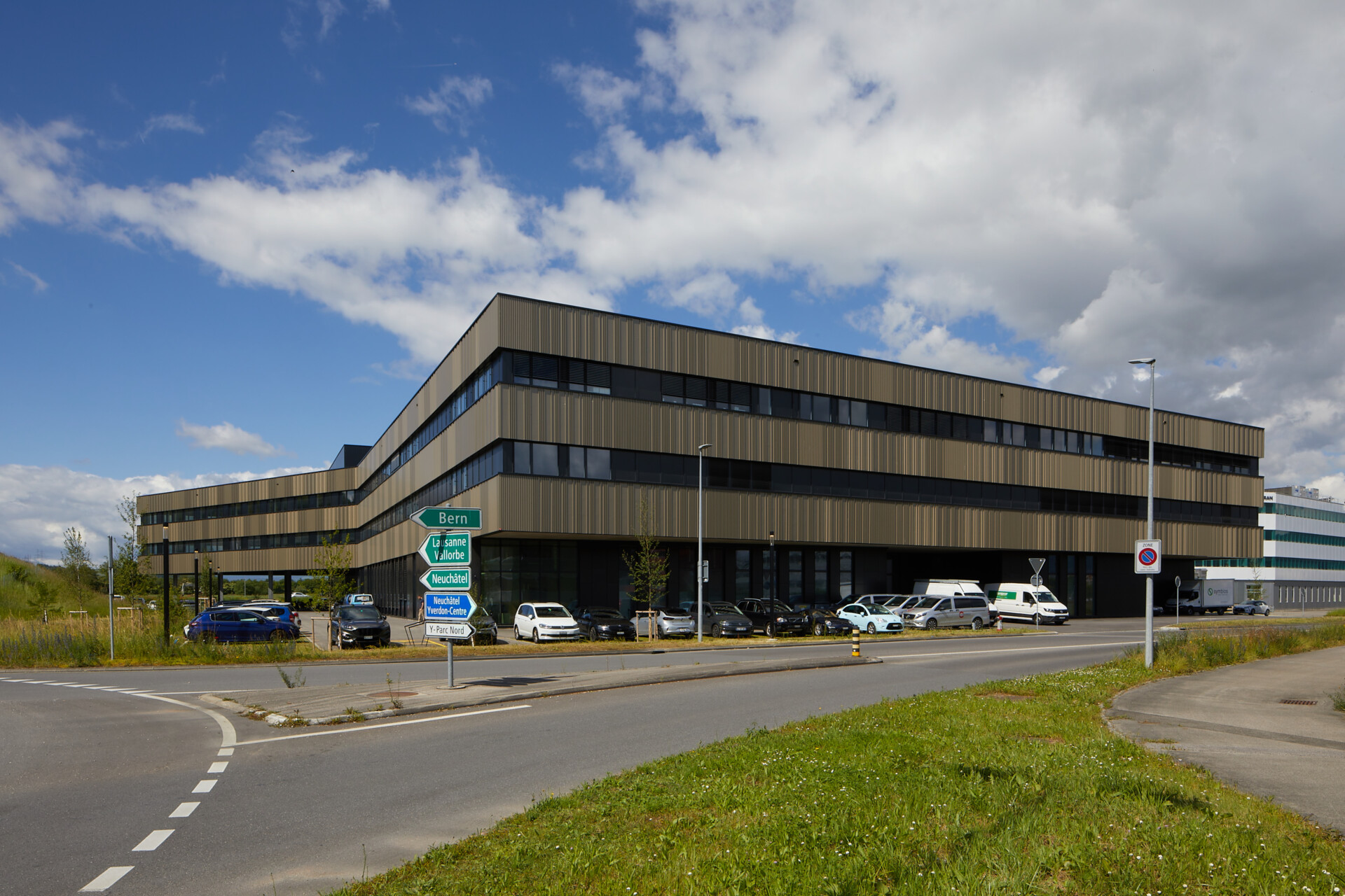 Situé dans le Parc Scientifique et Technologique, au sud d’Yverdon-les-Bains, le bâtiment bénéficie d’une excellente connectivité et visibilité le long de l’autoroute A1.